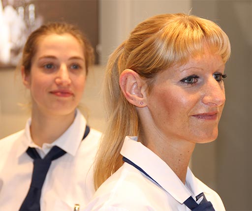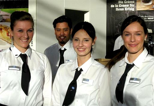 Eine Weltmarke wie Nestlé Schölller lässt man vor allem eines: Strahlen. Genau aus diesem Grund sind die Hosts und Hostessen in schlichtem Schwarz und Weiß aufgetreten und haben ihre Aufgaben als Welcome-Manager, Eisportionierer, Kostümpromotion als Frozen Joghurt Dame, Snackvorbereitung, Service, Logistik, Bar und Küche mit einem strahlenden Lächeln und der sprichwörtlichen mks-Freundlichkeit wahrgenommen.